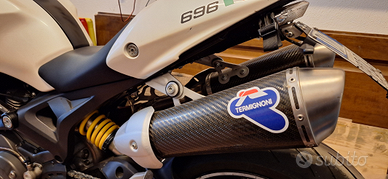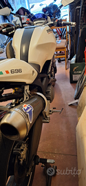 Vendo come da titolo, Monster 696 versione plus del 2009. 37mila km circa. Tenuto in ottime condizioni. Accessori: scarico termignoni in carbonio con mappatura e filtro aria bmc, portatarga corto nrc, frecce led sequenziali, cerchio posteriore da 5.5 per gomma 180 (omologato a libretto) + regalo cerchio da 4.5 per gomma 160. Unghia monoposto removibile, manopole e bilanceri barracuda, cupolino scuro (regalo originale), freni brembo e tubi in treccia. Gomme pirelli diablo rosso 3 all'80%. Mantenitore di carica batteria specifico con adattatore. Batteria cambiata estate 2025, regolatore tensione 2024, revisione forcelle eseguita da circa 6mila km. Pastiglie al 50%. Tagliandata annualmente a inizio stagione. Bollo pagato fino a agosto 2026.Revisione valida fino a aprile 2027. Prezzo trattabile. Dispongo di carrello, quindi posso portarlo da acquirente nel raggio di 200km.