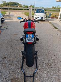 Moto in ottime condizioni, fatti entro lo scorso anno cinghie distribuzione, freni anteriori completi con dichi e revisione steli forcella anteriore. Eseguiti anche numeriose modifiche come sostituzione cerchione posteriore per poter alloggiare gomme maggiorate, installazzione del radiatore dell'olio, pompe freno e frizione rispettivamente radiale e semiradiale. Vendo per passaggio a modello superiore(bara su ruote). Come da titolo annuncio la moto é perfettamente depotenziabile per uso con patente A2, già fatto in passato entrambi lavori di depotenziamento e ripotenziamento. Per ulteriori informazioni non esitare nel contattarmi.