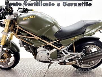 DUCATI MONSTER 750, IMM. 02/1998 , COLORE VERDE MILITARE, KM 42.000 . MOTOCICLO IN BUONE CONDIZIONI GENRALI, DOTATO DI FARO ANTERIORE LED, PROTEZIONE SERBATOIO, MANOPOLE ORO BARRACUDA, LEVE IN ERGAL.