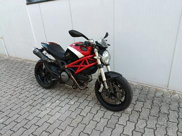 Ducati Monster 796 - 2011 - Rosso, nero e biancoUna naked iconica in condizioni immacolate. Questa Ducati Monster 796 del 2011 sfoggia la classica livrea tricolore rosso, nero e bianco, ed è dotata di scarico Termignoni che ne esalta il carattere sportivo e il sound inconfondibile Ducati.