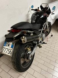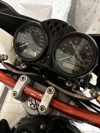 Anno 2004, 55 milakm. Motore iniezione 803 pistoni stampati dalla fabbrica,6 marce, frizione ad olio con antisaltellamento di serie. 2 chiavi con codice, funzionante, revisione valida per un altro anno, carter cinghie, parafango, tegolino posteriore, scarico spark tutto carbonio OMOLOGATO , filtro pannello Bmc. Veramente divertente, non perde una goccia ma necessita di una ripristinata estetica ( serbatoio con vernice brutta, vetrini contakm rovinati, frecce ingiallite, manopole consumate... merita un MAKE UP. permutata con uno scooter pensando di cambiargli look ma ho già troppi progetti attivi. Non svendo, non ho problemi di posto, se trovo un appassionato che la voglia sistemare con passione, oppure da utilizzare così. La moto va! Un paio di anni fa sostituiti tutti gli oli, dischi frizione, mono posteriore, cinghie, gomma posteriore, pastiglie e ancora qualcosa altro.. utilizzata come dayli casa-ufficio.
