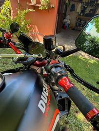 Manubrio, manopole, specchi, vaschette liquidi freni, pedaline, tappo olio motore Rizoma