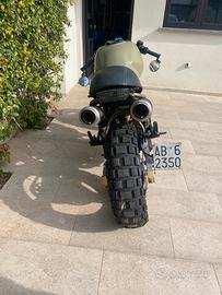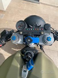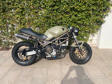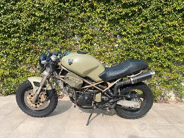 In vendita bellissima Ducati Monster 900 (1996, 904 cc) trasformata con cura in stile Cafe Racer dal look militare moderno e aggressivo. La moto ha solo 34.000 km ed è in ottime condizioni generali. È stata modificata con parti di qualità: sella trapuntata nera, faro tondo grande, manubrio basso, parafanghi in stile scrambler, colorazione verde militare opaco con grafica sul serbatoio e doppio scarico posteriore. Inoltre ho uno scarico aggiuntivo mono che esce lateralmente (completo di collettori), perfetto per chi vuole un sound più tradizionale o un look ancora più “naked”. Due possibilità di acquisto: • Così com’è (versione Cafe Racer militare completa di doppio scarico): 5.500 €Moto pronta all’uso, con look unico e carattere forte. • Con tutte le parti originali incluse + possibilità di rimetterla completamente stock (colorazione originale riportata come appena uscita dalla fabbrica): 6.500 €Il venditore include tutti i componenti originali della Monster (serbatoio, sella, carenature, specchietti, ecc.) più lo scarico mono laterale aggiuntivo. Può essere riportata allo stato originale con una verniciatura professionale, diventando praticamente una moto “come nuova” del 1996. La moto è sempre stata custodita in garage, con manutenzione regolare e meccanica sana (motore Desmodromico affidabile). Documenti in regola Perfetta per chi ama le Ducati classiche, le cafe racer o chi cerca una base unica da personalizzare ulteriormente. Prezzo trattabile solo per veri interessati. Solo privati seri. Per info, foto aggiuntive o visione contattami in privato.
