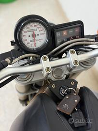 Vendo Ducati Monster 900 valvoloni, MY1996 immatricolata a gennaio 1997, iscritta FMI. Versione di passaggio tra modello valvoloni del 96 e valvole piccole del 97, con alcune componenti di entrambe le annate come ad esempio forcelle regolabili e vaschette carburatori del MY97, valvole grandi del MY96 ecc. prodotta in 531 esemplari (documentato da casa madre). La moto è dotata di unghia monoposto, scarichi e cupolino originale (molto raro) del suo colore Rosso Europa.