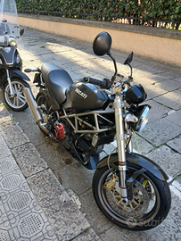 Vendesi splendida DUCATI Monster 900s i.e. del 2000 con 54.000km, equipaggiata con mono Holins al posteriore e forcelle regolabili all'anteriore, scarichi in titanio con filtro e centralina dedicata, frizione a secco antisaltellamento, pedane arretrate Rizoma, parafango ant. post. fianchetti in carbonio. Moto potente e divertente. Si vende solo perché è la quarta moto e non ho il tempo di usarla.