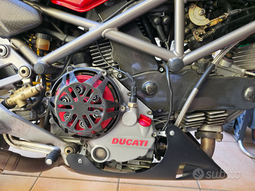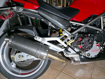 monta accessori in carbonio scarico leovince in carbonio omologato frizione aperta davvero un gran bella moto vecchio stile ducati intramontabile