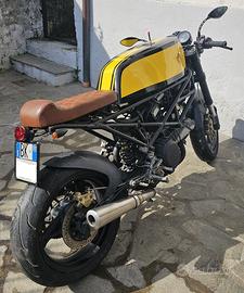 Vendesi Ducati Monster 620 dark anno 2003 completamente rivista in stile Scrambler. I lavori eseguiti sono i seguenti: Semimanubri Serbatoio su misura Sella monoposto su misura Kit pedane Rizoma Kit coperchio frizione Rizoma Telaio e cerchi verniciati a polvere Pneumatici tassellati Heidenhau Scarichi custom in acciaio inox