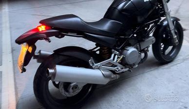 Cedo ducati monster 400cc (è sostanzialmente una 600cc con limitatore tutt'ancora non disinstallato) del 2005 con meno di 15000Km, stato di manutenzione perfetto. Conservo i pezzi originali ma sono stati cambiati gli specchietti (in carbonio), le frecce a led, il faro a led. La moto ha 6 marce ed ha installato il contamarce sempre a led. Regalo cupolino nero, giubbino spike nero con protezioni, auricolari bluetooth neri. Prezzo 3000 euro
