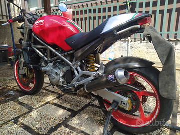 Vendo DUCATI Monster S4, in ottime condizioni, anno 2001 con molte parti in carbonio, ha lo stesso motore della Ducati 916, kit collettori di scarico racing( Fogarty) da 50, centralina e airbox dedicati ducati performance per collettori Fogarty e silenziatori aperti, silenziatori in carbonio, cerchi Brembo Marchesini, gommata nuova, frizione e batteria nuova, forcelle appena revisionata, regolatore di tensione nuovo, revisione appena fatta, in regola con la tassa di possesso (anche anni precedenti), in possesso della chiave rossa per la duplicazione delle chiavi originali Ducati, distribuzione fatta a 28.000 km, attualmente la moto ne ha 32.000, a corredo fornisco collettori originali e altra centralina ducati performance per scarichi liberi, no perditempo, massima serietà.