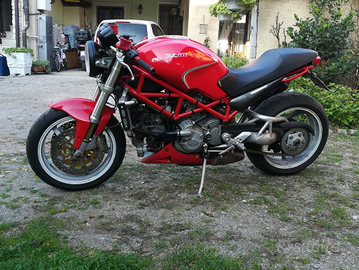 Ducati Monster S4R 996, anno 2005 con 40000km originali. Varie parti custom in carbonio come para radiatore, prese aria, coperchi cinghie, fianchetti e terminali scarico omologati Roads. Oltre a Freccie, portatarga, stop led, parafango 999, manubrio Barracuda, specchietti, pedane, manopole.