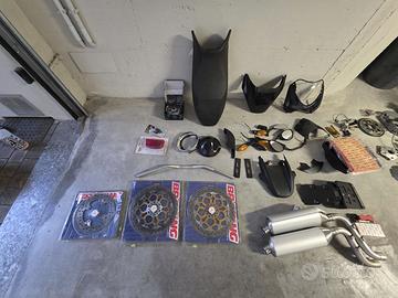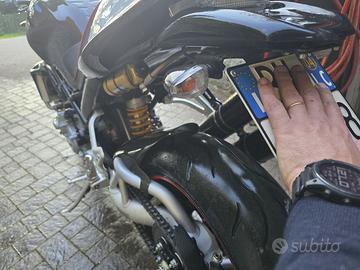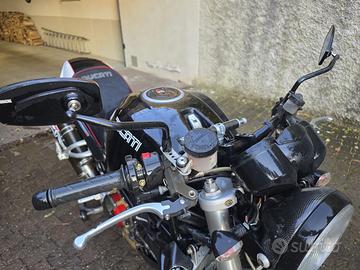 Vendo Ducati Monster S4R anno 2004, solo 9.000 km reali, configurazione full optional e **TUTTI i pezzi originali disponibili**. Una S4R rarissima per chilometraggio, qualità degli accessori e possibilità di riportarla completamente allo stato originale, ideale per appassionati, collezionisti o uso conservativo ✅ Chilometraggio eccezionalmente basso ✅ **Tutti i pezzi originali disponibili** ✅ Nessuna modifica irreversibile ✅ Accessori Ducati Performance e top di gamma ✅ Moto sempre ricoverata al coperto 🔩 **Accessori installati ** Ohlins posteriore + orig. Ammortizzatore di sterzo Ducati Performance Dischi freno in ghisa Discacciati + pastiglie dedicate + orig. Disco freno posteriore wave + orig. Pompa freno e pompa frizione Discacciati + orig. Tubazione frizione con raccordi in titanio + orig. Attuatore frizione in ergal nero + orig. Frizione evoluzione con dischi nuovi (circa 2.000 km) + orig. Kit Ducati Performance: scarico + centralina + filtro + cornice + orig. Fondelli omologati originali Termignoni (+ altri fondelli, tubi, adesivi, fascette) Decatalizzatore originale Ducati Performance + orig. Centralina Power Commander 3 USB Corona e trascinatore in ergal nero Calotta faro, copricorona, copriradiatori, vasca sottocoppa e sopraradiatore in carbonio 2 Parafanghi anteriore DP 916 + orig. Parafango posteriore DP Tappo serbatoio carb. DP + orig. Carter frizione in magnesio ! + orig. Manubrio Magura nero + orig. Riser artigianali in ergal anodizzato + orig. Specchietti in alluminio dal pieno + orig. Sella nuova + copertura + 1 originale Coprisella verniciato a mano + orig. Codino roadracing nero + orig. Faro post. LED + orig. Faro targa LED Cavalletti officina ant + post ! 📌 Stato del veicolo Moto ferma da circa 10 anni Non marciante Da ripristinare prima dell’uso (batteria, tagliando completo, controlli) Documenti in regola, sempre bollata (90 €/anno) Solo interessati, no sognatori, no scambi. Non ho fretta di vendere, e' in garage da 10 anni...