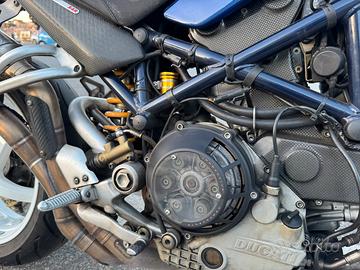 Vendo special su base Ducati Monster S4r del 2003. Ottime condizioni meccaniche. Km 47000. Tenuta sempre in garage (negli ultimi 7 anni ha fatto solo 7000 km), tenuta sempre sul doppio cavalletto centrale.e La moto ha subito nel corso del tempo diversi interventi di personalizzazione e monta svariati accessori: