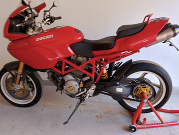 SVendo causa inutilizzo Ducati Multistrada 1000 S, km 26000, tempestata di accessori, forcella e mono completamente revisionati, specchi barracuda, tamponi paratelaio e paraforcella, radiatore olio supplementare, air box ducati performance, filtro BMC, centralina ducati performance, scarico completo Mivv, titanio e carbonio, con omologazione, pompe freno e frizione radiali Braking, cerchi, dischi e pinze del 996, pasticche sinterizzate, attuatore frizione maggiorato in ergal, carter ispezione fase, flangia portacorona, spingidisco e coperchio frizione in ergal, catena Regina nuova, nemmeno 2000km, senza poi contare tutto il carbonio, inoltre includo 3 cavalletti: per monobraccio, per piedini forcella e infine per sottocanotto.