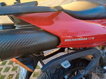 vendo ducati multistrada 1100 s km 64000 cinghie fatte gomme mutant al 90 % ammortizzatori Ohlins revisionati , moto che circola su strada, la uso ogni tanto revisione ok . Monta kit Termigoni scarico carbonio ma ha anche lo scarico originale e la sua centralina ancora nello scatolone Ducati. La moto e' corredata da 3 bauli Ducati performance documenti chiavi etc. No perditempo la moto sta a Desenzano. Su strada Va forte, adatta a gente capace di andare il motore è a posto è la meccanica anche . Le sospensioni sono multiregolabili, serve cambio olio e filtro naturalmente,batteria nuova già fatta. Adatta a viaggi lunghi e tra le curve si esalta sul misto in montagna beh chi la conosce non serve tante chiacchiere . Solo gente seria ed interessata, non ho tempo da perdere, ne ho fretta di venderla a prezzi stracciati e' tenuta bene.