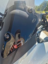 Sospensioni Öhlins elettroniche (unico modello con Öhlins di serie), 4 Riding Modes personalizzabili, ABS e controllo trazione regolabili, cavalletto centrale e laterale, manopole riscaldate, KeyLess ride, borse Ducati con attacco senza telai e stessa chiave, bauletto GIVI Monokey, leve freni regolabili, presa USB, cupolino fumè Ducati Performance + originale + uno maggiorato invernale, sella Ducati Performance anti vibrazioni + originale, flangia GIVI attacco TankLock e borsa serbatoio, paracatena in carbonio + originale, batteria al litio. Manuali originali e chiave di scorta.