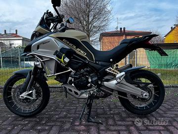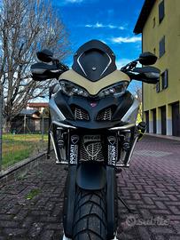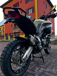 Salve, vendo moto come da titolo. Il suo allestimento Enduro Pro comprende di serie colorazione Sand, cupolino basso, pull bar / para motore / faretti supplementari touratech e terminale Termignoni. Successivamente sostituito cupolino basso trasparente con uno in carbonio, griglie para radiatori, frecce posteriori Ducati performance, flangia serbatoio per borsa, para steli forcelle in neoprene. Insieme alla moto cedo telaietti valigie laterali e telaio bauletto entrambi della Gigi. Gommata nuova, anteriore e posteriore con meno di 500km. Moto tenuta in maniera maniacale, sempre tagliandata in Ducati con le relative fatture, A disposizione per qualsiasi info o ulteriori foto. Possibilità di visionarla anche con un vostro meccanico di fiducia.