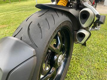 Fari full led e cornering + ABS - 4 mappature - sospensioni elettroniche - manopole riscaldate - cavalletto centrale - set valige laterali + bauletto centrale + borsa serbatoio con tanklook, tutto originale ducati - capolino rialzato leggermente fumè - selle rifatte con imbottitura confort + tessuto idrorepellente con cuciture rosse - filtro aria BMC - attuatore frizione maggiorato Kbike