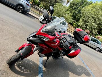 Vendo Ducati Multistrada 1200S Touring. Immatricolata Settembre 2012, allestimento MY 2013/14. La moto è stata da poco tagliandata in concessionaria Ducati (sostituzione catena, corona e pignone) e gommata con Pirelli Scorpion Trail 2 (~80%). L'intera storia di manutenzione è documentata e certificata. Tagliando Desmo dei 24.000 km effettuato sempre in Ducati. Scadenza revisione: 06/2027. La moto monta un motore Testastretta 11° Desmodromico bicilindrico a L da 1198 cc: 150 CV a 9.250 giri e 118,7 Nm di coppia. Abbinato al cambio a 6 rapporti e alla frizione antisaltellamento, offre un'esperienza di guida sportiva e coinvolgente su qualsiasi tipo di strada. Colore: Rosso Triplo Strato Metallizzato (non il Rosso Ducati standard - più profondo e cangiante alla luce). Presenti due graffi sulle carene, visibili nelle foto allegate in dettaglio. Altri accessori: - Sospensioni Öhlins semi-attive con regolazione elettronica DES - 4 riding mode selezionabili (Sport, Touring, Urban, Enduro) - Set borse laterali rigide originali Ducati incluse nel prezzo - Controllo di trazione DTC - Cornering ABS Bosch Con soli 33.800 km percorsi è uno dei pochi esemplari sul mercato realmente poco usato per il suo anno. Secondo proprietario, sempre tenuta in garage, mai incidentata e mai subito furti. Prezzo: 8.000 € leggermente trattabile. Non valuto scambi. Targa visibile in foto per possibile visura CarFax o PRA.