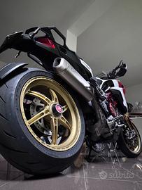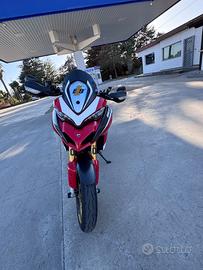 vendo ducati Multistrada 1260 versione pikes peak del gennaio 2021 tenuta davvero con la massima cura. Perfetta in tutto. Unico proprietario. Sempre tagliandata in concessionaria ducati dimostrabile. Ultimo eseguito ad aprile 2025 (tagliando desmo). Superaccessoriata più tutti i ricambi originali. Monta: specchietti bar end, paramani colore nero del mts 950, tappi foro specchi, griglie radiatori olio e acqua, tamponi forcella e forcellone cnc, manopole riscaldate ducati, borsa manubrio ducati, borsa serbatoio ducati, coperchio carter frizione più spingi disco cnc, scarico completo termignoni più up map, catena, corona +2 denti e pignone regina e supersprox, paracatena, cerchioni oz modello gas rsa, valigie laterali ducati, tappi copriforo telaio cnc, gomme nuove dot25 rosso4 Pirelli con 150km. Moto perfetta in tutto. Km 35200.