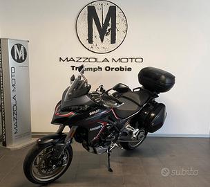 Accessori : Versione S, manopole riscaldate, faretti fendinebbia, valigie laterali originali Ducati, bauletto Givi con schienalino.