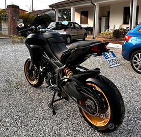 La moto é completamente pellicolata con un wrap 3M fatto da una carrozzeria specializzata, il suo colore originale é il grigio opaco e sotto é perfetto. Ho applicato anche un Ppf sul fanale anteriore. Con la moto vengono fornite anche le due borse laterali.