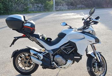 Splendida Multistrada 1260 S Novembre 2019 con soli 27500 km. Con tris di valigie e di borse interne morbide originali, borsa serbatoio originale Ducati, tappo serbatoio elettrico senza chiave, manopole riscaldabili, cruise control, Quickshifter, barre paramotore e barra protezioni paramani. Desmo Service appena fatto a 27mila km con sostituzione tris corona pignone e e catena e sostituzione pastiglie freni anteriori e posteriori con tagliando completo. Bollo pagato fino a Luglio 2026. Moto perfetta, tenuta sempre in garage.