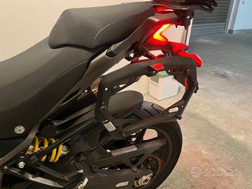- telai Sw-Motech con attacchi monokey (sostituibili con la maggior parte dei marchi con acquisto di kit di conversione) e facilmente rimovibili dalla moto in caso di non utilizzo.