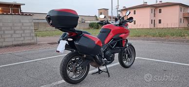 la moto presenta come accessori il tris valige originale ducati, barre di protezione laterali, protezioni leve manubrio e staffa per supporto navigatore/telefono.