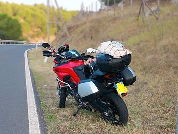 Bellissima, accessoriata con fari led supplementari, para scocca tubolare. Completa di telaietto e valigie laterali shad nuovissime e utilizzate per 10 GG di viaggio in Sicilia. Il prezzo indicato è senza valigie che possono essere acquistate a parte con euro 400 (acquistate nuove con telaietto e pagate 650 euro) La vendo per cambio categoria.