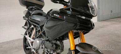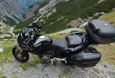 o Cupolino fumè scuro maggiorato / borse laterali rigide Ducati performance e baule posteriore / cavalletti anteriore e posteriore.