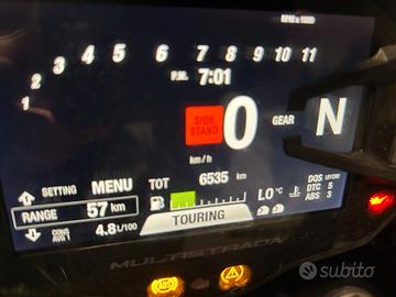 Accessori : Versione S con bauletto in tinta originale Ducati con schienale, cavalletto centrale, barra porta navigatore, cupolino maggiorato Givi + originale, mantenitore di carica batteria originale Ducati.
