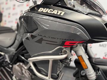 Ducati Multistrada V2 S Grey con vari accessori istallati tutti originali: valigie laterali in alluminio, centrale in plastica, protezione tubolari, griglia radiatori e tanto altro. Desmo tagliato già eseguito.