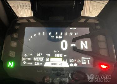 La dotazione di serie comprende sospensioni elettroniche Skyhook con precarico elettrico, cambio elettronico Ducati Quick Shift up & down, cruscotto a colori, blocchetti elettrici retroilluminati, Cruise Control, sella bassa e sella rialzata attualmente montata, plexiglass fume rialzato , cavalletto centrale, manopole riscaldate , tris di borse comprese nel prezzo