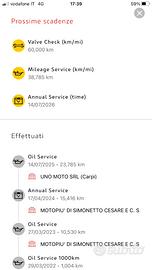Multistrada v4s allestimento Travel & Radar ,sistema hands free,tappo serbatoio carburante elettronico,manopole riscaldate,sella conducente e passeggero riscaldate,faretti supplementari a led,cavalletto centrale,cruise control,catena regina hpe esente manutenzione,sensori pressione pneumatici,navigatore integrato,cambio eletroassistito sia a salire che a scendere,abs cornering,4 mappature personalizzabili,abbassatore automatico.Moto appena tagliandata presso officina ufficiale Ducati,e ancora in garanzia fine aMarzo 2026.