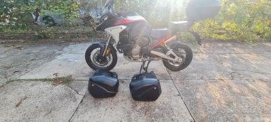 Moto in perfette condizioni, super accessoriata, allestimento radar con I seguenti accessori: manopole riscaldate, barre para motore, faretti supplementari, griglie radiatori, top case originale, valigie laterali con borse interne tutto originale ducati, pacchetto sport con parafango anteriore in carbonio e terminale akrapovic, navigatore tom tom rider 500 e mantenitore di carica originale ducati.