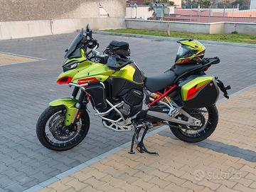 Salve cedo bellissima e unica al mondo con la grafica aerografata Lamborghini 63 parliamo di una multistrada v4 s full full con scarico akrop completo borsa laterali in tinta cn la moto cupolino e deflettori in carbonio cerchi a raggi performance piastra rally e tanti altri acc telecamere ant e post radar e travel