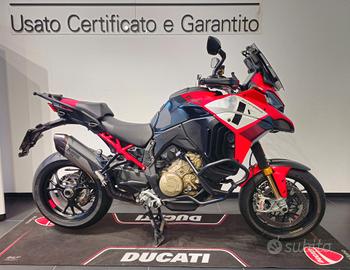 Moto visibile presso la nostra sede di Sesto san Giovanni in viale Italia 476. Tel: - Mail: info@ducatimilano.it Bellissima Ducati Multistrada Pikes Peak immatricolata a Settembre 2023 in ottime condizioni. Con all'attivo solamente 19223KM Regolarmente tagliandata come da manutenzione ordinaria prevista dalla casa madre. Unico proprietario. Incluso nel prezzo di vendita i seguenti accessori (sono incluse anche le parti originali) dal valore commerciale di circa 1050€ * Manopole riscaldabili * Protezione per serbatoio * Griglia protettiva in alluminio per radiatore olio * Griglia protettiva in alluminio per radiatore acqua * Pedane in alluminio * Cavalletto centrale Gomme e trasmissione nuove, appena cambiate dal nostro service. Garanzia ufficiale fino a 09/2027 Possibilità di finanziamento anche per l'intero importo con tasso agevolato.