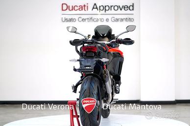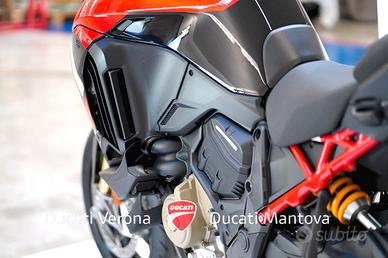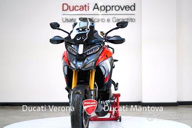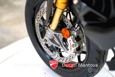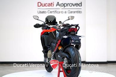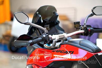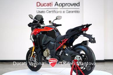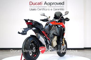 Ducati Mantova è Ducati Store ufficiale per Mantova e provincia dal 2001. Personale con esperienza, officina, abbigliamento, accessori, finanziamenti e moto usate di qualsiasi marca. MOTO VISIBILE NELLA SEDE DI MANTOVA a San Giorgio Bigarello in Via Primo Maggio, 1. DUCATI MULTISTRADA V4 PIKES PEAK (MY 2026) - NUOVA - PRONTA CONSEGNA Il punto d'incontro definitivo tra sportività estrema e versatilità. Siamo lieti di proporre presso la nostra concessionaria la nuova Multistrada V4 Pikes Peak 2026, la versione più affilata e performante mai prodotta. Punti di Forza: Ciclistica: Dotata di cerchi Marchesini forgiati da 17 pollici all'anteriore e al posteriore, per una precisione millimetrica in inserimento e una reattività senza precedenti. Sospensioni: Öhlins Smart EC 2.0 capace di adattarsi in tempo reale allo stile di guida e alle condizioni dell'asfalto, garantendo il massimo supporto nelle pieghe più estreme. Livrea: Dettagli in carbonio, estetica ispirata ai colori della MotoGP, impreziosita da numerosi componenti in fibra di carbonio e dal terminale di scarico Akrapovic omologato di serie. Motore: V4 Granturismo 1158 cc di pura potenza, capace di erogare ben 170 CV. Un motore fluido ai bassi e travolgente agli alti, con intervalli di manutenzione (Valve Check) ogni 60.000 km. Elettronica: Pacchetto completo comprensivo di Radar (anteriore e posteriore), Blind Spot Detection, Adaptive Cruise Control e la modalità di guida dedicata Riding Mode Race. Scheda Tecnica in breve: Anno: 2026 Condizioni: Nuova Potenza: 170 CV (125 kW) Peso: 214 kg (a secco) Garanzia: 4 anni ufficiale Ducati (4Ever Multistrada) Il prezzo di listino è 33.190 Euro. L'immatricolazione è esclusa. Ducati Mantova - Oscar Residori Per info e finanziamenti: --- Nota bene: La dotazione tecnica e gli accessori indicati nella presente scheda potrebbero non coincidere con l'effettivo equipaggiamento del veicolo, a causa della non uniformità dei dati pubb