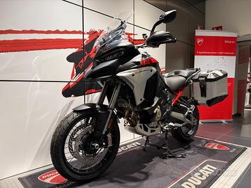 Bellissima Ducati Multistrada V4 Rally allestimentoAdventure Travel & Radar - valigie laterali alluminio, cerchi a raggi, radaranteriore e posteriore, manopole e selle riscaldate, cavalletto centrale - nellacolorazione Dark Stealth immatricolata a Marzo 2025.