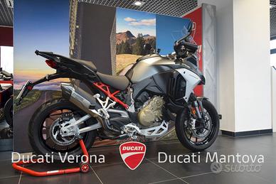 Ducati Multistrada V4 S in colorazione Aviator Grey, immatricolata nel 2023. La moto è in condizioni impeccabili, curata maniacalmente e pronta per qualsiasi tipo di viaggio. Questa versione rappresenta l'eccellenza tecnologica di Ducati, con prestazioni da sportiva e il comfort di una grande tourer.