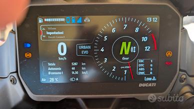 Vendo Ducati Multistrada V4 S Radar colore Ducati Red, chilometraggio attuale di circa 6.300 km. La moto è dotata di sella comfort SR Sellerie (valore 765,00 €), cavalletto centrale , sensori di pressione pneumatici (TPMS), griglia protettiva in alluminio per radiatore acqua , griglia protettiva in alluminio per radiatore olio , protezione per serbatoio e sistema antifurto Easyblock. Nel prezzo di vendita è incluso lo scarico originale conservato, mentre sono espressamente esclusi lo scarico completo Akrapovic e il bauletto (top case) con relative cover. Non accetto permute o scambi di alcun tipo. Il prezzo non è trattabile e chiedo di non essere contattato da perditempo o per offerte ridicole; un piccolo sconto sarà valutato esclusivamente con chi verrà a visionare il veicolo di persona