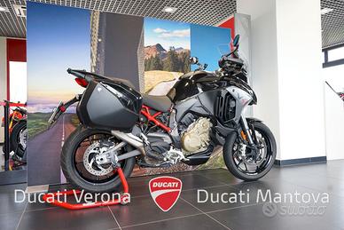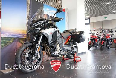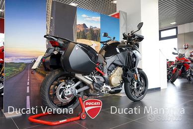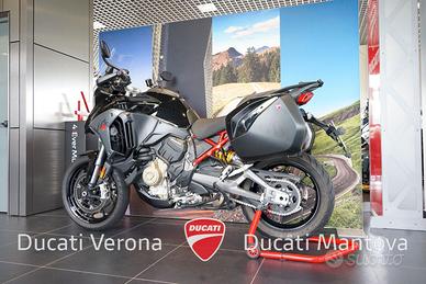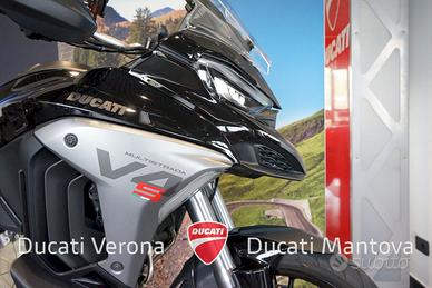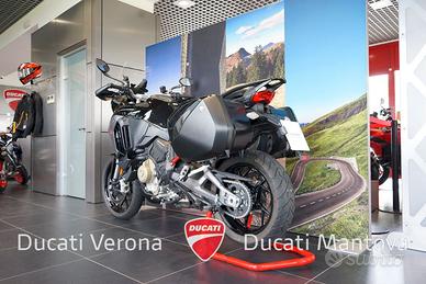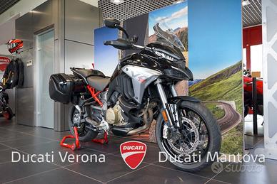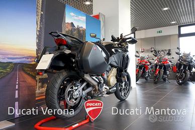 Ducati Mantova è Ducati Store ufficiale per Mantova e provincia dal 2001. Personale con esperienza, officina, abbigliamento, accessori, finanziamenti e moto usate di qualsiasi marca. MOTO VISIBILE NELLA SEDE DI MANTOVA a San Giorgio Bigarello in Via Primo Maggio, 1. Multistrada V4 S Travel & Radar immatricolata nel 2025, nella magnetica colorazione Thrilling Black. Una moto che unisce il massimo della tecnologia Ducati a un look totale black che ne esalta le forme muscolose ed eleganti. Un esemplare pari al nuovo, perfetto per chi non accetta compromessi tra comfort nei lunghi viaggi e prestazioni da vera sportiva. [?] Perché scegliere questa Multistrada V4 S MY25? * Pacchetto Travel & Radar , la versione più completa e richiesta per il turismo a lungo raggio * Radar Anteriore e Posteriore sistema Adaptive Cruise Control e Blind Spot Detection per una sicurezza attiva ai vertici della categoria. * Valigie Laterali perfettamente integrate e in tinta per la massima capacità di carico. * Cavalletto Centrale fondamentale per la stabilità in sosta e la facilità di manutenzione. [?] * Selle e Manopole Riscaldate per dominare ogni strada e ogni clima nel massimo del benessere. [?] * Livrea Thrilling Black una colorazione premium che dona alla Multistrada un carattere audace, sportivo e incredibilmente moderno, mettendo in risalto i dettagli tecnici del telaio e del motore. * Motore V4 Granturismo 170 CV di fluidità e potenza infinita, con l'esclusivo intervallo di manutenzione del gioco valvole a ben 60.000 km. [?] * Garanzia 4Ever Multistrada viaggia senza pensieri con la garanzia ufficiale Ducati di 4 anni inclusa nel prezzo. [?] * Condizioni da Vetrina moto impeccabile, pronta per essere messa su strada e accompagnarti nella tua prossima avventura. Riepilogo dell'Offerta: [?] Modello: Multistrada V4 S (MY 2025) Versione: Travel & Radar Colore: Thrilling Black Anno: 2025 Garanzia: 4Ever Multistrada (Garanzia ufficiale inclusa) Il pre