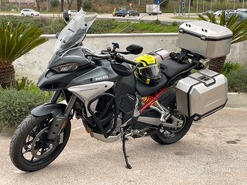 Dotata di tutti gli accessori di serie, paramotore, frecce led posteriori Ducati performance, manopole riscaldate, sella bassa e tris di bauletti SHAD in alluminio.