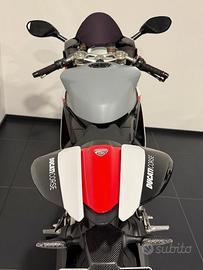 Vericiatura V2 Final Edition, sospensioni full Ohlins e ammortizzatore di sterzo Ohlins, silenziatore titanio Akrapovic + originale, tappo Performance a sgancio rapido, frecce a led, tutte le plastiche in carbonio, manopole racing, plexi fume', slider forcella, griglia radiatore olio, portatarga Performance, kit frizione avista, protezione leva freno Rizoma.
