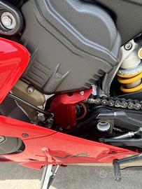 Ducati Panigale V4 1100 2023 con soli 3200 km con diversi accessori e comprese tutte le parti originali ; Specchi rizoma , coprileve lightech, parafango ant + post carbonio ,copri motore carbonio, copritelaio carbonio , copricatena carbonio, copriforcellone carbonio, alette deflettori carbonio , coprialternatore carbonio , copricollettore carbonio , aletta cambio carbonio, aletta freno post carbonio , carte frizione cnc , tappo benziana cnc rapido, parapignone cnc , dado mozzo post ergal ,tappo olio ergal, tappo freno ergal, tappo freno olio ergal,cupolino fumè, copriserbatoio spazzolato , frecce ant rizoma , frecce posteriori integrate ,scarico titanio carbonio .