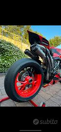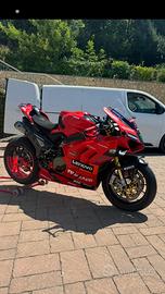 Vendo Ducati panigale v4s 2023 targata, con tutte le sue parti originali. La moto ha 3700km di cui 2000 in strada. Attualmente è in configurazione pista. Utilizzo amatoriale L'allestimento è il seguente: - impianto di scarico Termignoni D200 titanio - mappa by Up-map -Pulsantiere entrambe Jetprime -acceleratore rapido jetprime -emulatore fari jetprime -emulatore cavalletto jetprime - filtro aria Sprint Filter -sella racing in neoprene - radiatore maggiorato H2O Performance altrimenti in giornate calde non è possibile girare - kit trasmissione passo 520, pignone e corona Sitta, catena DID ERV5 - carena completa Flamingo Corse colorazione ufficiale lenovo -copri serbatoio Flamingo corse SBK -grip serbatoio - plexiglass Flamingo corse -alette Flamingo verniciate italiane - tubo freno anteriore Accossato - pastiglie anteriori Brembo Z04 - pedane bonamici regolabili - tamponi Spider perno ruota anteriore - leva frizione TWM - protezione leva freno anteriore - cover telaio in carbonio - cover forcellone in carbonio - tappo benzina bonamici - battute di sterzo Spider - protezioni carter bonamici - bilanciere sinistro bonamici - kit GPS pz racing -semimanubri spider -collarino bonamici ammortizzatore di sterzo -venduta con cerchi originali forgiati mai utilizzati in pista -forcelle anteriori revisionate maggio 2025 -mono posteriore revisionato marzo 2026 Moto tenuta maniacalmente completamente originale di sospensioni, telaio e motore come da fabbrica, appena tagliandata di olio e filtro motore, olio freni, pastiglie nuove Z04, sostituita acqua distillata radiatore. pronta all'utilizzo