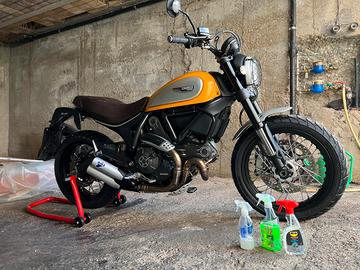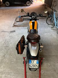 Vendo per mancanza di tempo Ducati Scrambler Classic ( la più rifinita), super accessoriata con i seguenti accessori : scarico Termignoni omologato, mono ammortizzatore Ohlins, paracoppa motore ,griglia protezione radiatore dell'olio, bull bar tubi acciaio paramotore,( tutto originale ),griglia faro omologata della versione Desert sled ,traversino manubrio, cupolino originale ,specchietti tondi ricavati dal pieno originali ,manubrio basso originale ducati,borsa legacy hepco e becker ,contrappesi manubrio originali ricavati dal pieno,paracatena in alluminio originale ducati scrambler,pedane con gommino, scrambler 1100, piastra allargamento base cavalletto, tabella portanumero con scritta incisa a laser, Gomme 80%. Inutile dire che la moto è pari al nuovo,sia esteticamente che a livello meccanico. Terzo proprietario Manubrio alto e scarico originale a corredo,regalo borsa da sella