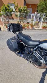 Ducati Scrambler 800 cc. Modello Icon allestimento Dark Febbraio 2022 km 9700 Scarico racing con centralina originale race e mappatura specifica. Istallato in officina ufficiale. Scarico di serie usato solo per 1000 km in dotazione. Porta pacchi originale con borsa morbida waterprof. Borse semirigide dedicate, con telaietti e fodere antipioggia. Borsa da serbatoio, originale, con istallazione a magnete e fodera antipioggia. Porta cellulare a manubrio dedicato. Cupolino Trasparente dedicato. Borsello a telaio porta lucchetto. Connettore per mantenitore batteria. Sella ribassata confort. Gomme al 70% Fascia protegi serbatoio in resina. Tagliando annuale effettuato a febbraio 2026 a 9600 km. Revisione effettuata a febbraio 2026 valida fino a febbraio 2028. Moto tenuta sempre in garage al chiuso, priva di graffi o danni anche lievi. Non interessano permute o scambi. Prezzo minimo non trattabile.