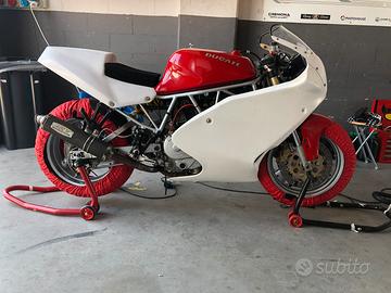 Per immediato realizzo vendo Ducati ss 600 anno 1993, iscritta FMI con librettino dedicato. Attualmente monta motore un della 750 inchiodato, dispongo delle carene originali più quelle da pista, monta cerchio da 5,5 pollici, forcellone in alluminio, asta antisaltellamento, ammortizzatore di sterzo, pompa freno e frizione radiali brembo, doppio disco anteriore, carburatori nuovi e molti altri accessori , iscritta FMI.