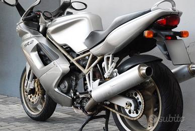 Motore: bicilindrico a L di 90° da 944 cc, raffreddato a liquido, distribuzione Desmodromica a 2 valvole per cilindro, alimentazione a iniezione elettronica. Potenza: circa 83 CV (61 kW) a 8.500 giri/min. Coppia: circa 84 Nm a 6.500 giri/min. Trasmissione: cambio a 6 marce, frizione multidisco a secco, trasmissione finale a catena. Telaio e ciclistica: telaio a traliccio in acciaio, forcella anteriore rovesciata Ø 43 mm regolabile, monoammortizzatore posteriore regolabile con leveraggio progressivo, cerchi da 17'' con pneumatici 120/70 ZR17 anteriore e 170/60 ZR17 posteriore. Freni anteriori a doppio disco Ø 320 mm con pinze a 4 pistoncini, posteriore a disco Ø 245 mm. Altezza sella: circa 820 mm. Peso: circa 207-212 kg in ordine di marcia. Serbatoio: capacità di circa 21 litri. Stile: moto sport-tourer con carenatura integrale e parabrezza medio-alto, posizione di guida sportiva ma non estrema; serbatoio affusolato, telaio a vista e linee tipiche Ducati fine anni '90. Carattere: moto che unisce prestazione e versatilità: motore potente ma gestibile, ciclistica capace di curva e di turismo. Adatta a chi cerca sportività con comfort per percorsi più lunghi, con il classico sound e feeling Ducati.La motocicletta viene consegnata con TAGLIANDO e REVISIONE in ordine, GARANZIA DI 12 MESI e DICHIARAZIONE DI CONFORMITA' a norma di legge.